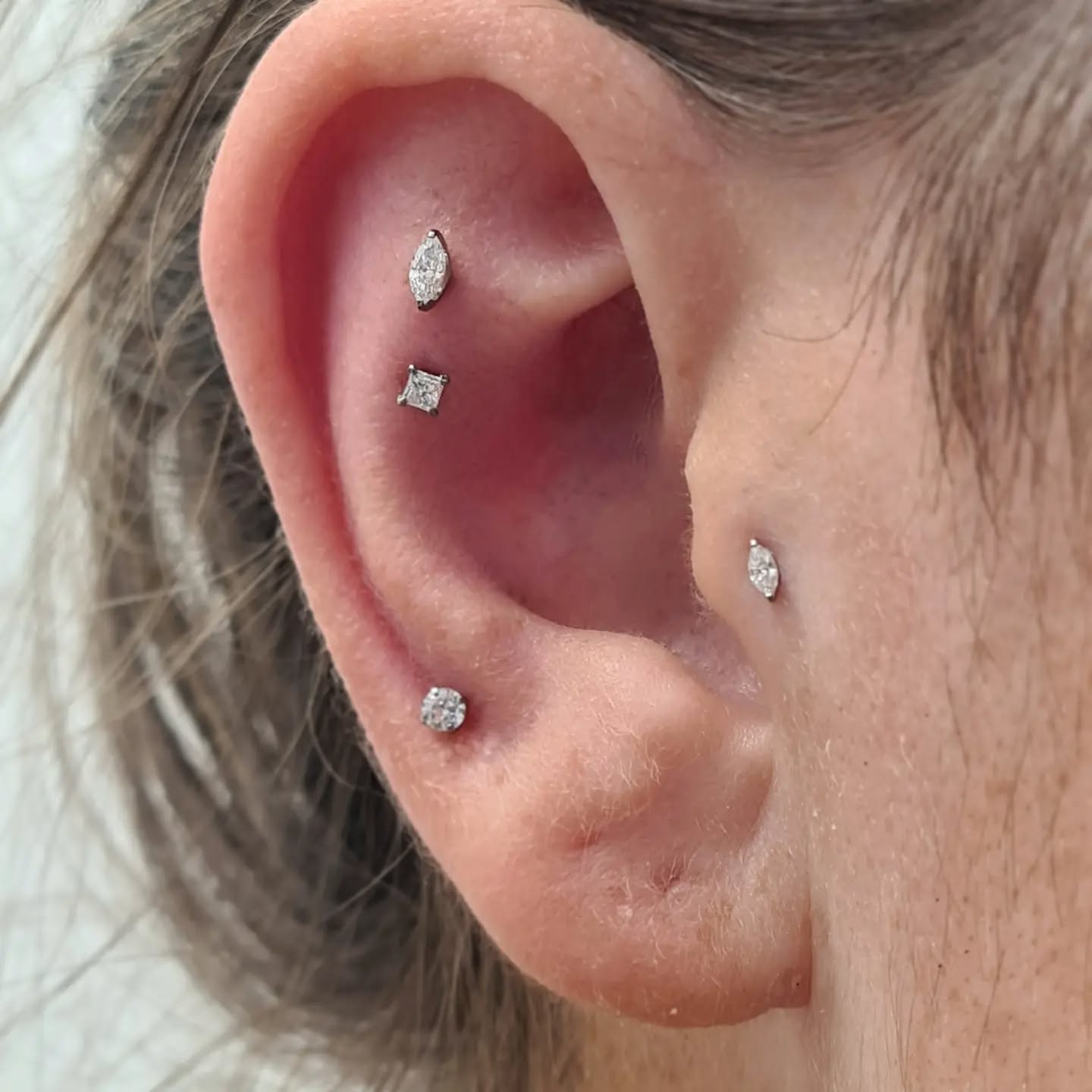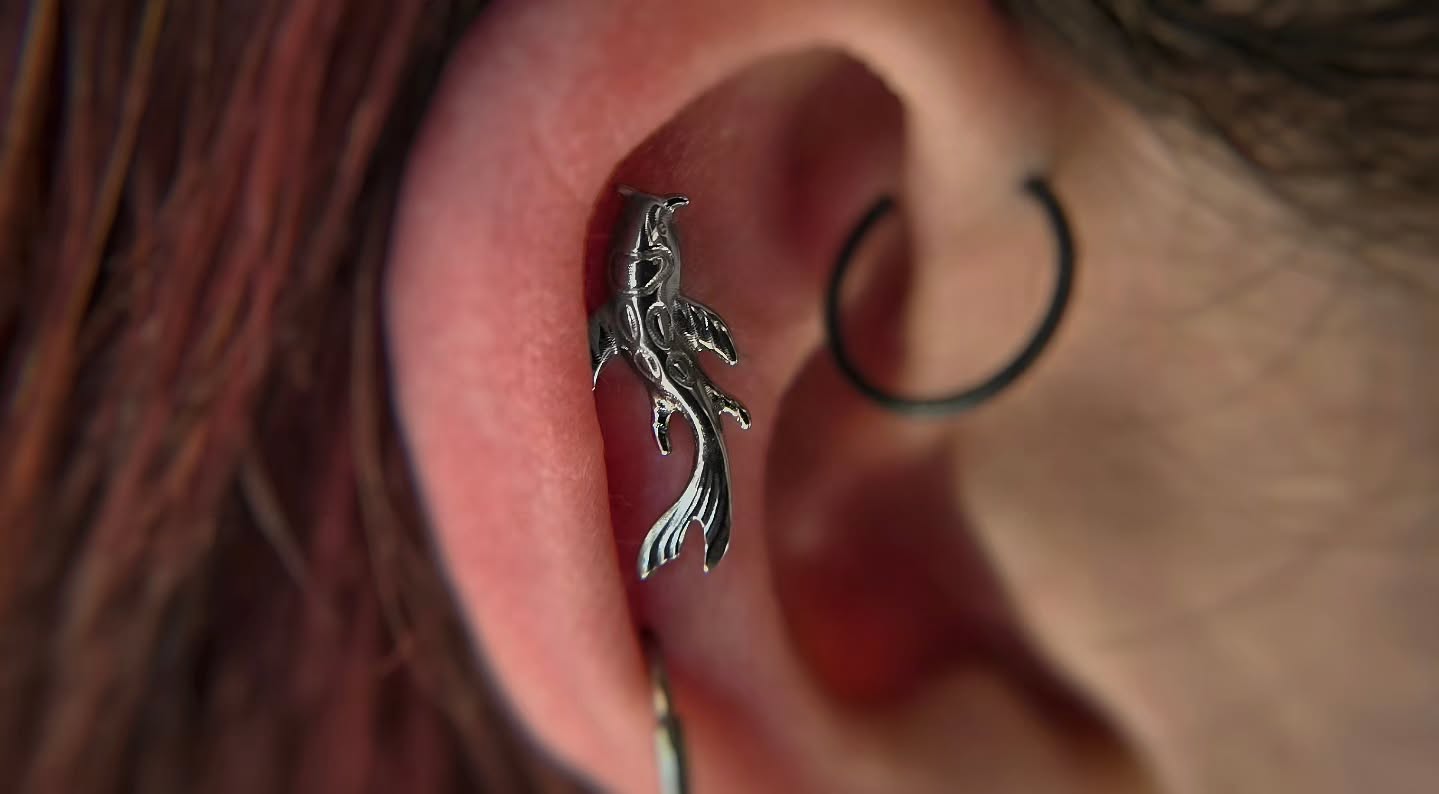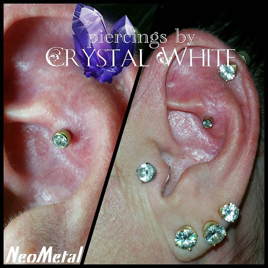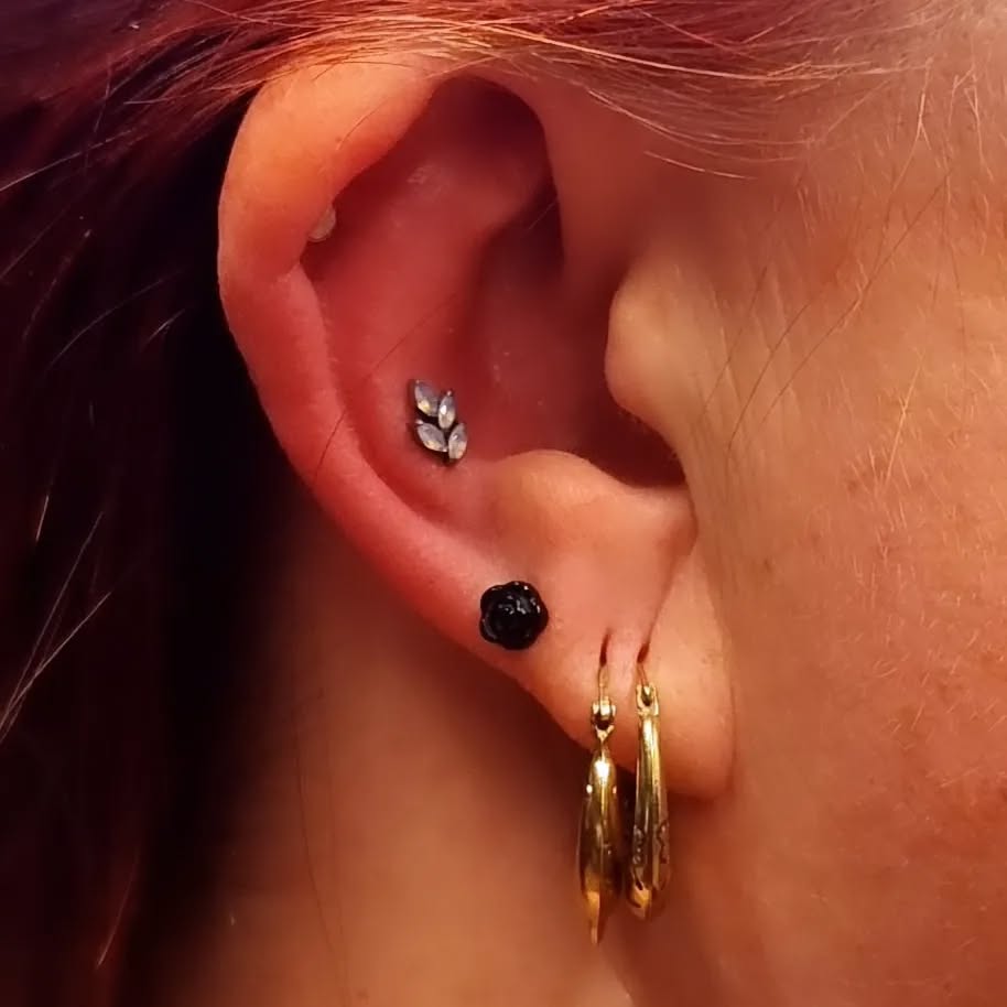 I bloody love everything about this piercing. This lady came down for a traditionally placed conch piercing, but after placing, marking out using the jewellery. She took a look in the mirror and her anti-tragus being so prominent we couldn't see all the jewellery in its glory, so I checked the front and back made sure she had the correct anatomy to do this safely and correctly and we placed this curved arc cluster from @anatometalinc @anatometaluk right on the peak between her snug and conch. I believe I also saw someone call this a 'snonch' ahaha! I like it and I hope this earns the title! #bluelotuspiercing #safepiercing #safepiercinguk #ukpiercer #professionalpiercer #earpiercing #cartilagepiercing #arccluster #anatometal #anatometaluk #anatometalinc #blackonyx #tigereye #cabochon #appmember #ukappmember #snonch #internallythreaded #titaniumjewellery #implantgrade #newcastle #newcastleupontyne |