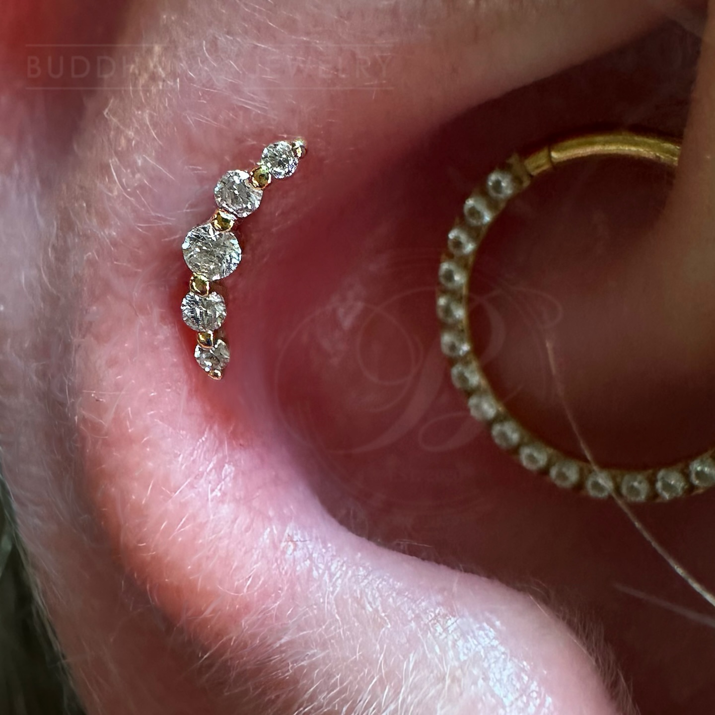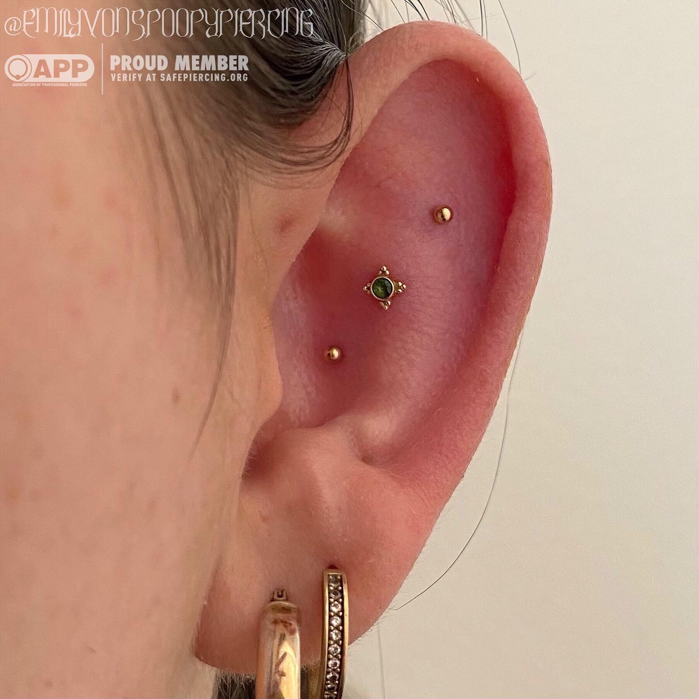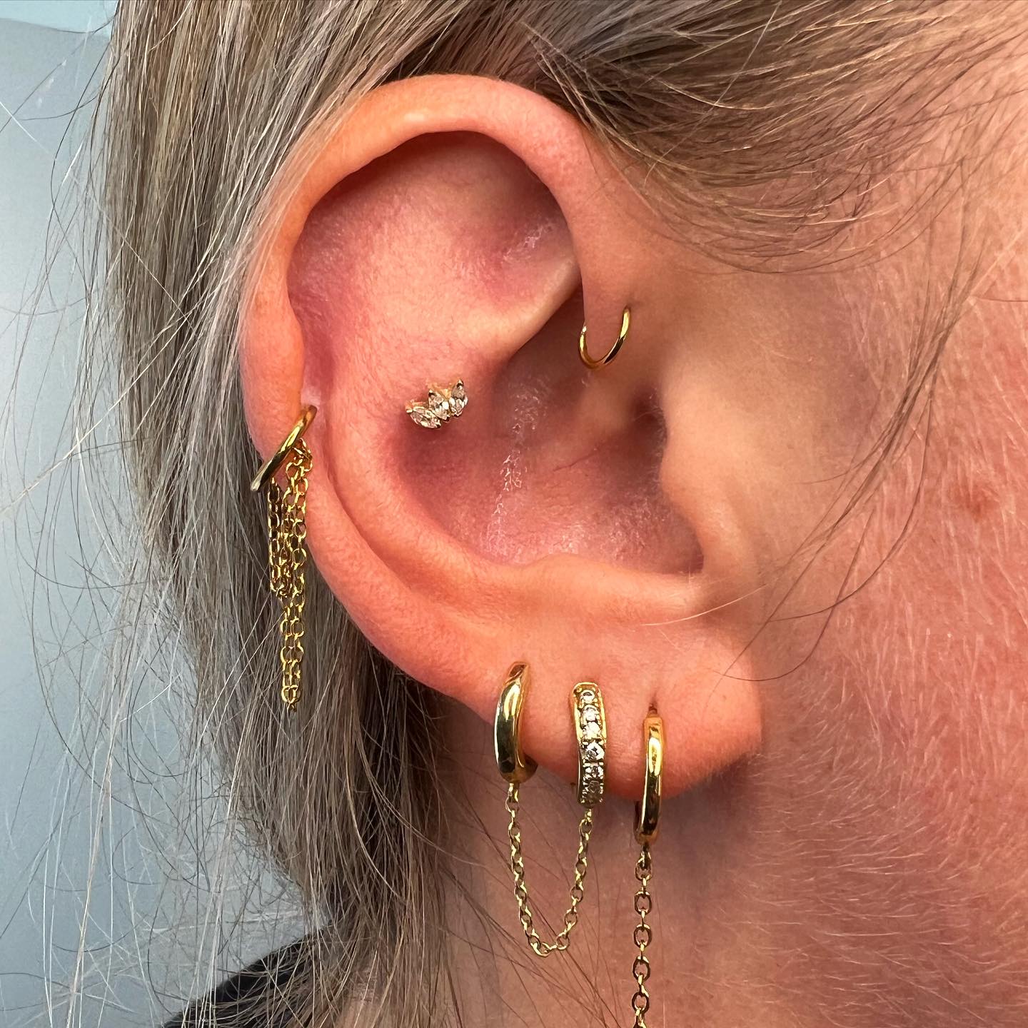 I bloody love everything about this piercing. This lady came down for a traditionally placed conch piercing, but after placing, marking out using the jewellery. She took a look in the mirror and her anti-tragus being so prominent we couldn't see all the jewellery in its glory, so I checked the front and back made sure she had the correct anatomy to do this safely and correctly and we placed this curved arc cluster from @anatometalinc @anatometaluk right on the peak between her snug and conch. I believe I also saw someone call this a 'snonch' ahaha! I like it and I hope this earns the title! #bluelotuspiercing #safepiercing #safepiercinguk #ukpiercer #professionalpiercer #earpiercing #cartilagepiercing #arccluster #anatometal #anatometaluk #anatometalinc #blackonyx #tigereye #cabochon #appmember #ukappmember #snonch #internallythreaded #titaniumjewellery #implantgrade #newcastle #newcastleupontyne |