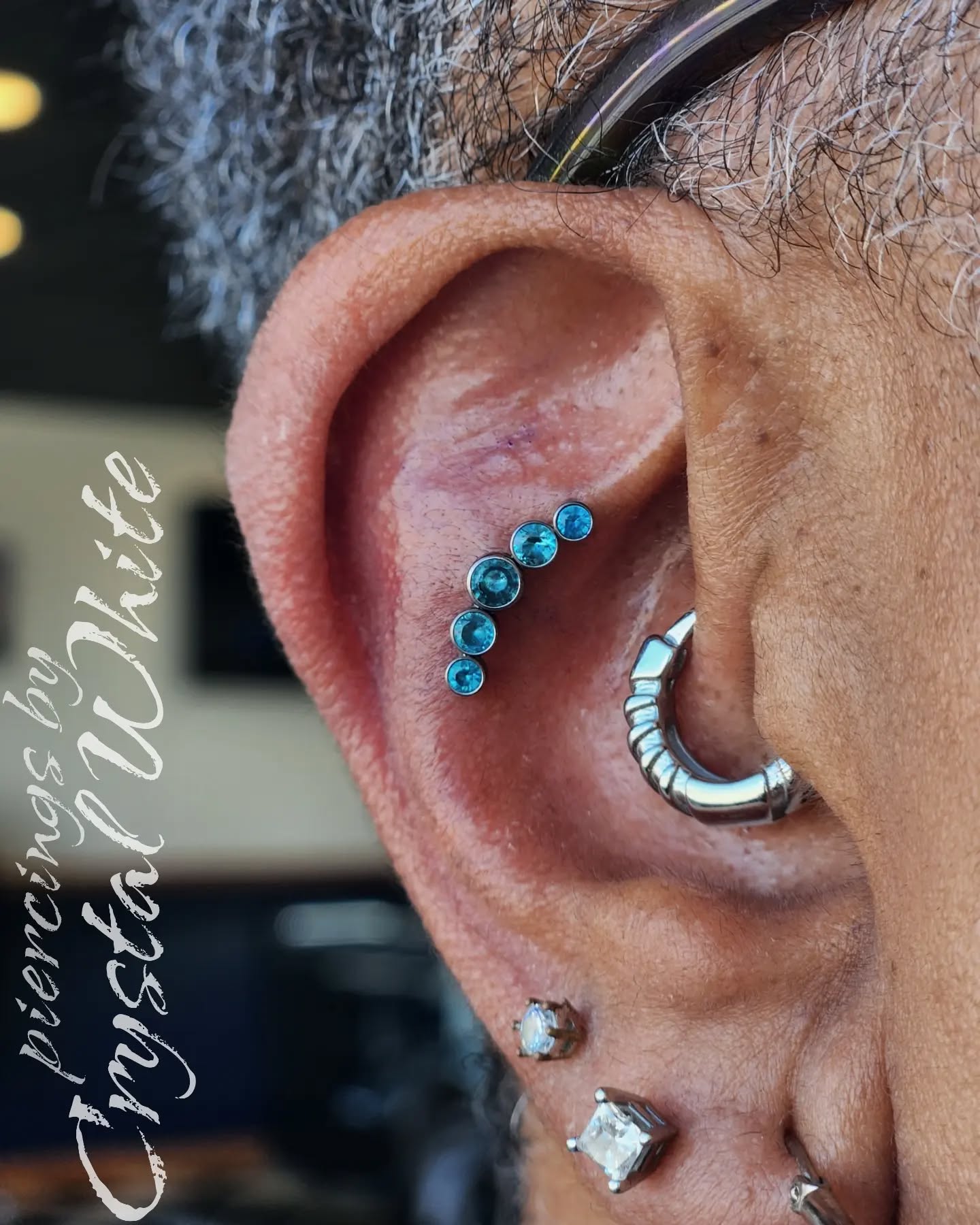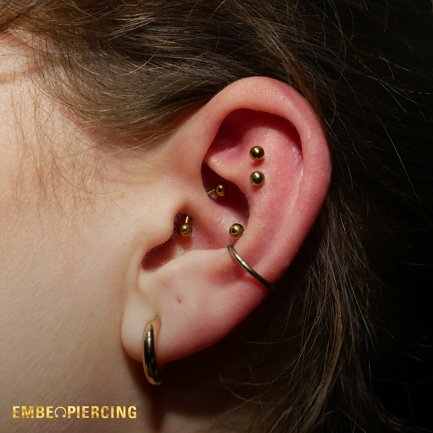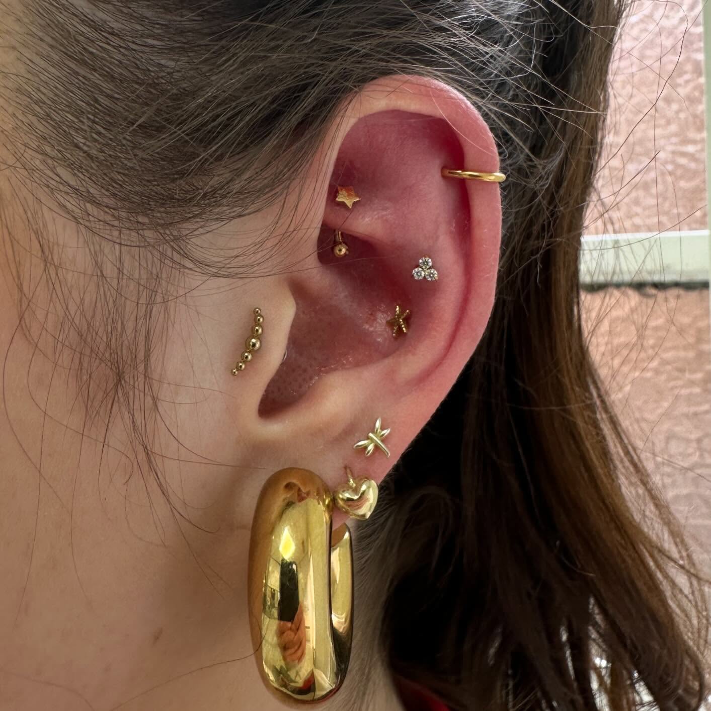 Allandra came in yesterday looking to dress up her ear and we decided on three piercings! She has awesome anatomy so we did a snonch, flat, and tragus piercing (which is unfortunately out of focus.) We plan on maybe adding a second tragus above in the future! For the snonch, we used a 5mm yellow gold star 🌟 and for the flat we used a yellow gold trinity end with peacock opals. All jewelry from @alchemyadornment 💎 Thanks so much Allandra! #alchemyadornment #tranceformations #nanaimo #bc #appmember #safepiercing @safepiercing #goldbodyjewelry #highqualitybodyjewelry #legitjewelry #legitbodyjewelry #legitpiercingslook #snonch #flatpiercing #helixpiercing #piercings #piercing #earpiercings #conchpiercing |