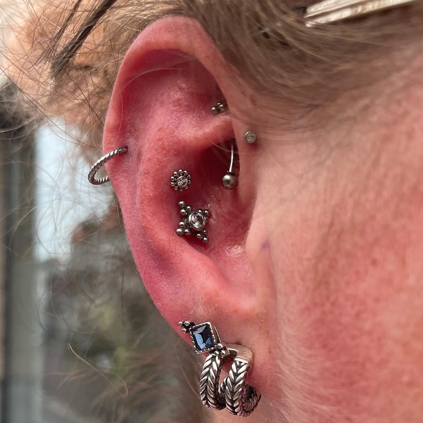 Deze dame kwam binnen met de wens voor een nieuwe piercing en gaf me de vrijheid om te kiezen wat we toevoegden aan haar bestaande earparty. Dus kozen we voor iets unieks!