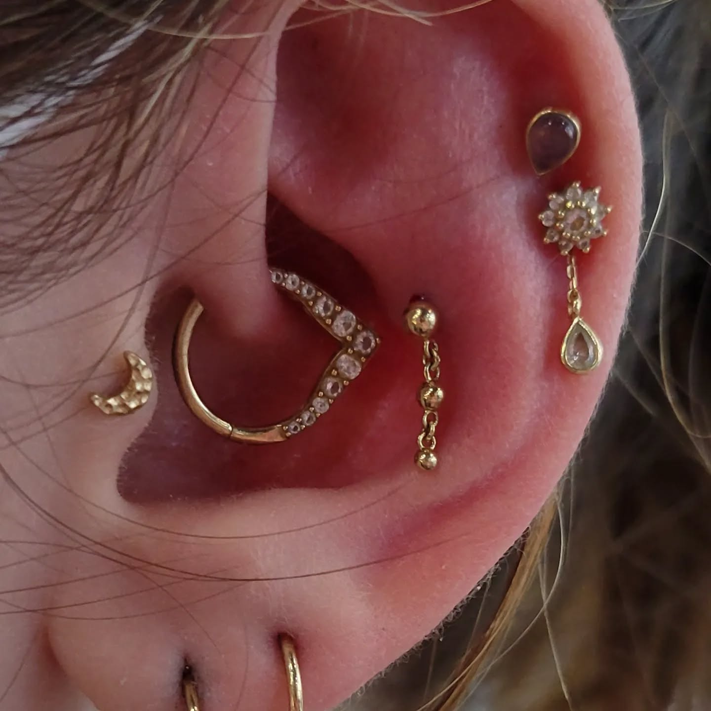 This upper conch, snonch? With the Innana was fun! This client and I discussed cool pieces and movement, didn't think we'd like a ring later. Surrounded by lots of other lovely pieces, too!