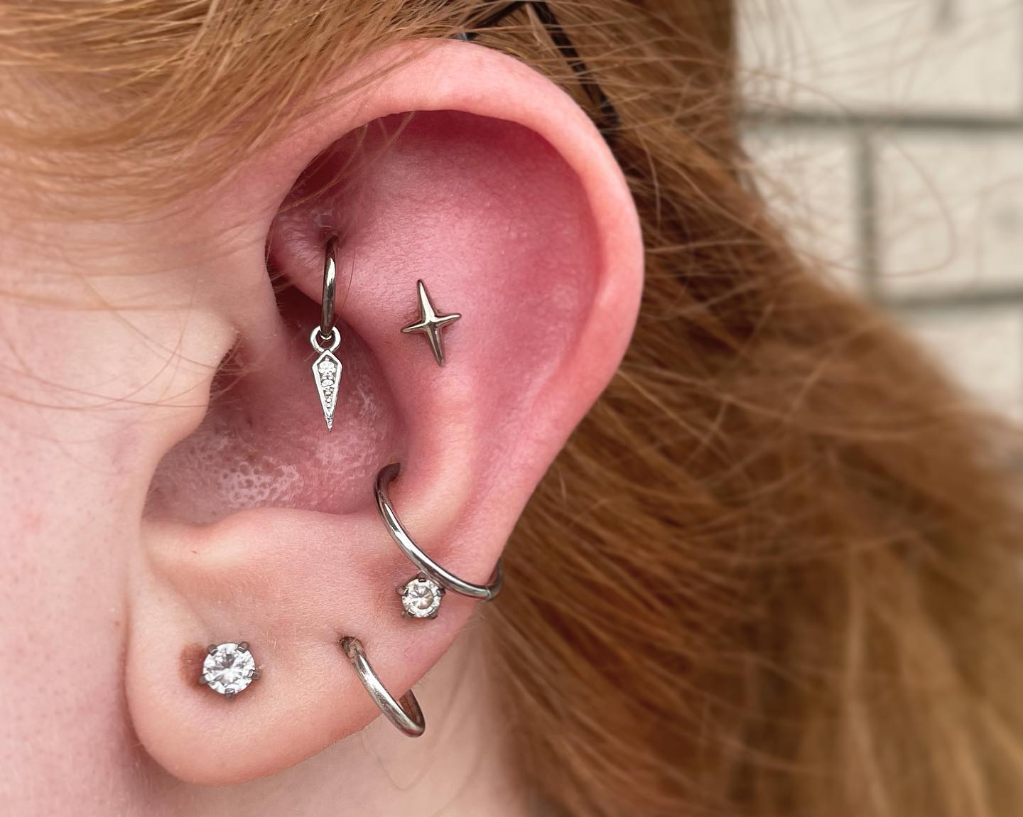 ✨We also switched her healed rook to a niobium ring by @anatometalinc with a solid 14k white gold Spike charm by @buddhajewelryofficial ✨