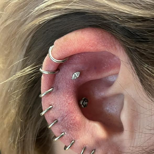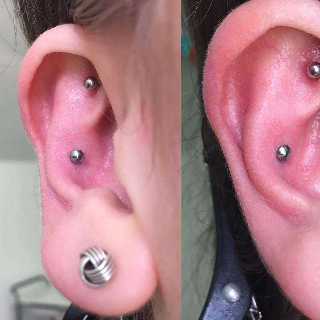 Let me introduce you to my little friend the Snonch piercing. Not quite snug, not quote conch... Something totally different. 👂💣 Not everyone can accommodate these (check FB for back shot) but those that can join an elite team of snonchians who are said to one day take over the world with cuteness.
