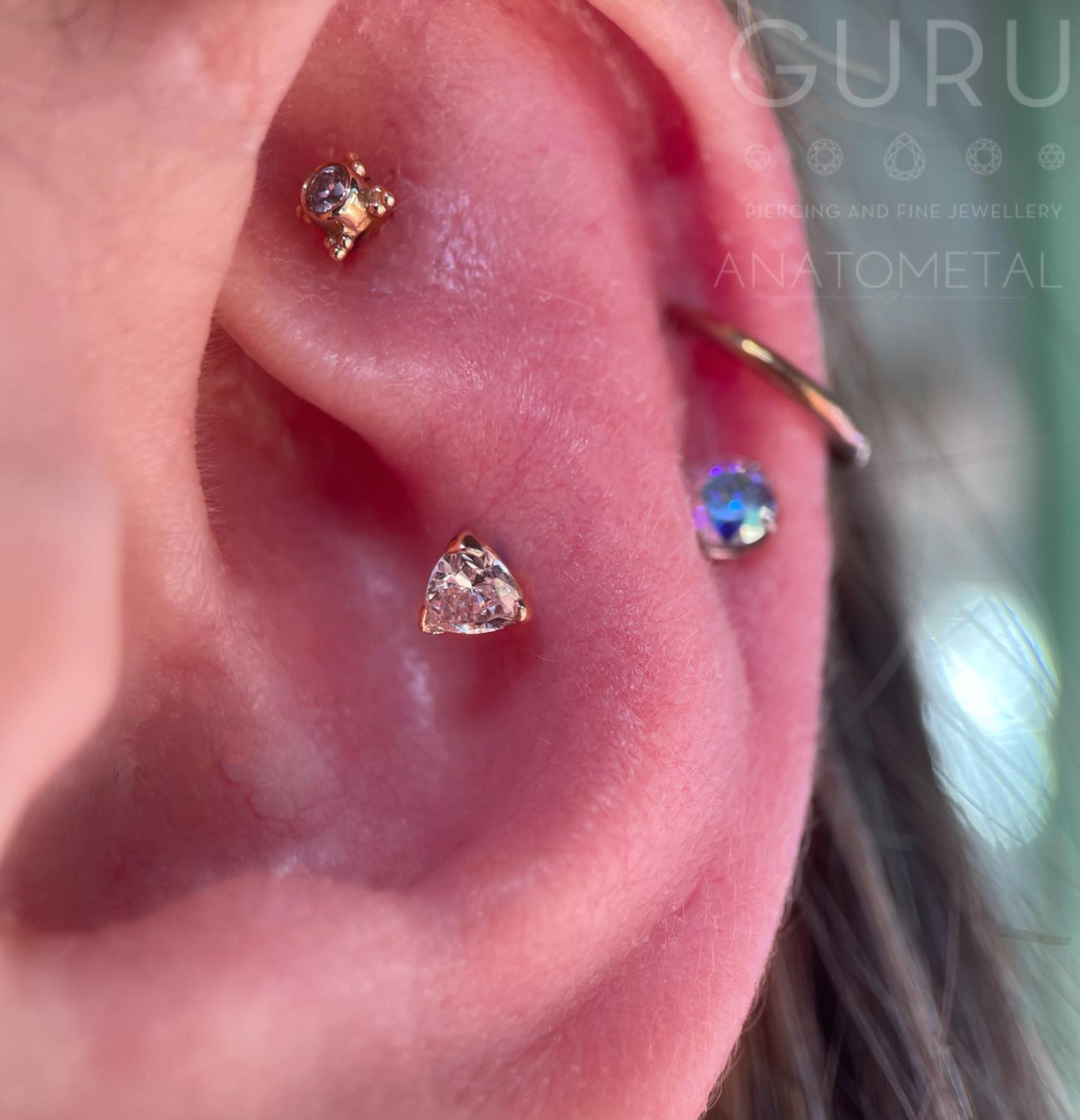 Love a good snonch! 🤩 Franki pierced this beautiful fresh upper conch piercing using an 18ct rose gold Trillion Swarovski end from @anatometalinc 🔥✨