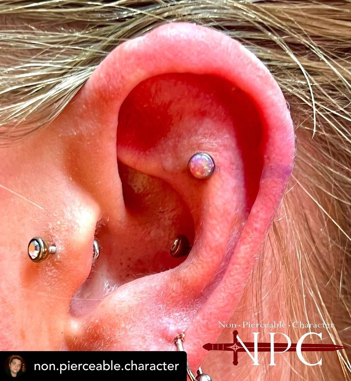 Fresh snonch piercing with a 3 opal bezel cluster from @industrialstrengthuk @industrialstrength 😍 #new #newpiercing #newjewellery #earspierced #earpiercing #piercedears #snonch #outerconch #ear #flat #opal #light #bright #vibrant #bezel #cluster #conch #forwardhelix #industrialstrength #blue #cute #unique #placement #safepiercing #getpierced #getmodified #carlisle #cumbria #uk |