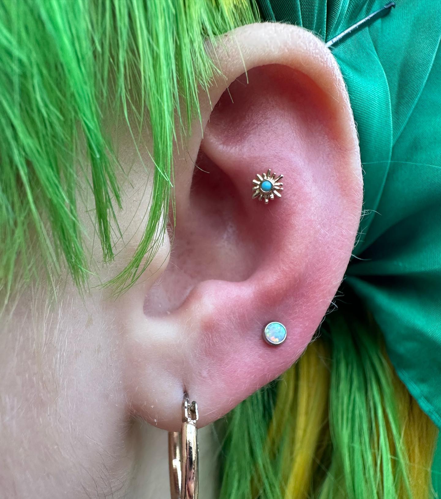 Super fun one for the lovely Victoria last week at Love Hate, she went for a beautiful 14karat Rose Gold Sunray in her Snonch with a genuine Turquoise centre from BVLA & for her matching High Lobes she went for a 3mm White Fauxpals from Industrial Strength! Love the way that Sunray sits so nicely on the ear! ✨👂🏻✨ @love_hatelondon @bvla @bvlalove @industrialstrengthuk #lovehatesocialclublondon #bvla #bvlalove #bodyvisionlosangeles #nottinghill #portobello #london #londonpiercer #bodypiercer #ukpiercer #rosegold #turquoise #14karatgold #solidgold #implantgradetitanium #astmf136 #industrialstrength #industrialstrengthuk #fauxpal #safepiercinguk #ukapp #lobe #lobepiercing #snonch #snonchpiercing #luxurypiercing #earcuration #curatedear #ukpiercerspotlight |