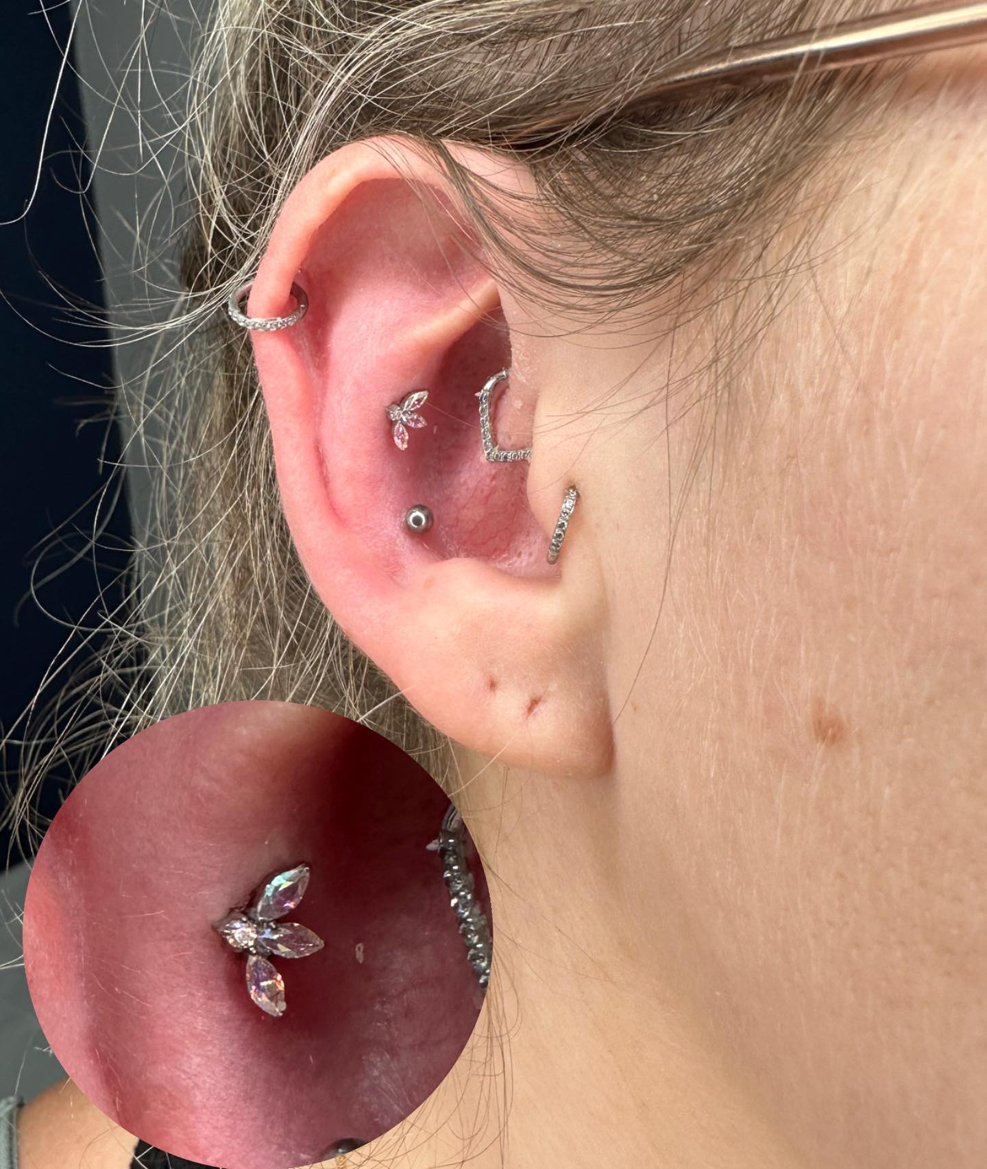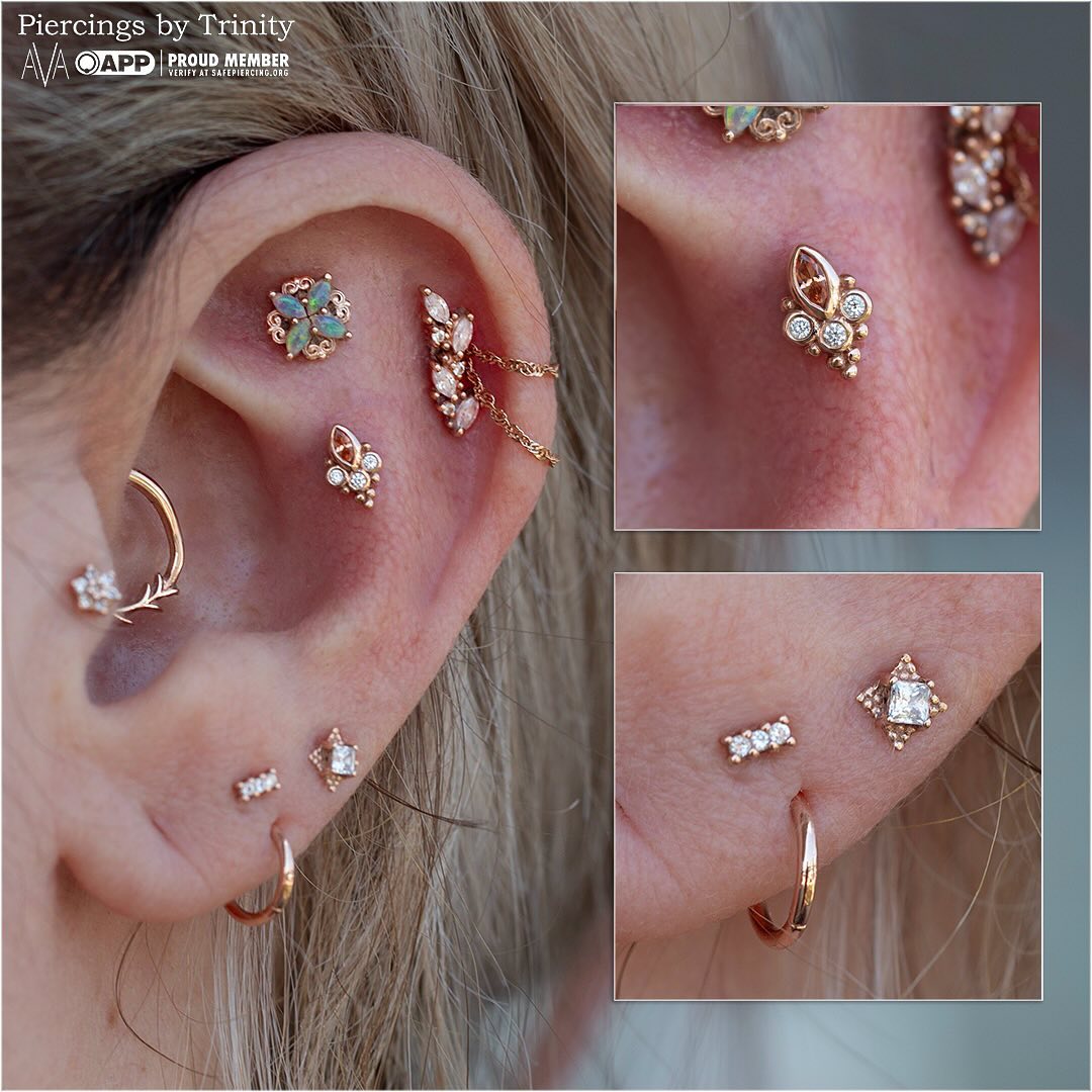• Managed to grab a pic of this healed snonch today which we also upgraded to this @inariorganics_uk white CZs bezel! I've been piercing this client since the literal start of my career so it was an honour to not only perform my first snonch piercing on her last year, but also watch it heal!
