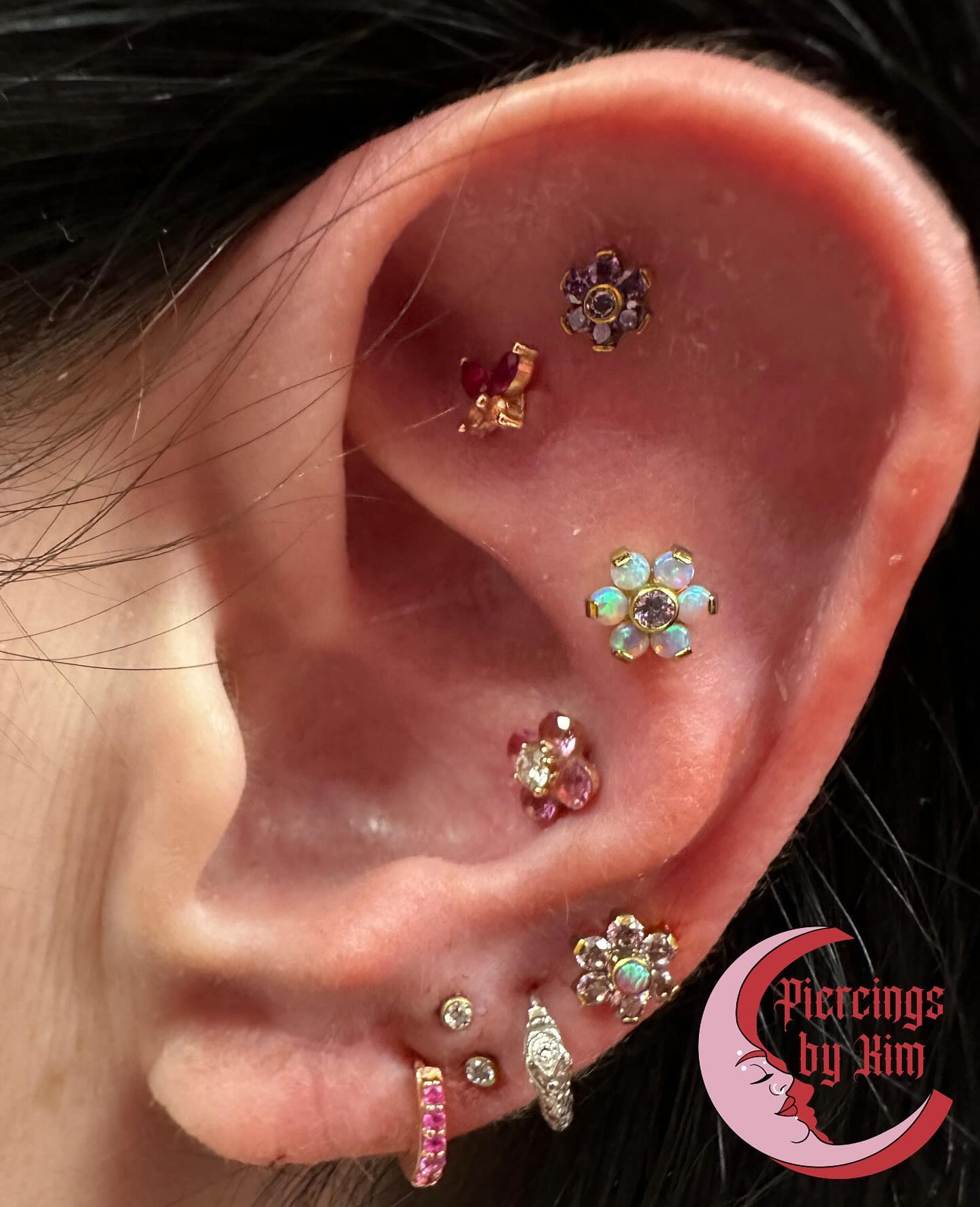 Had the pleasure of piercing @kayleejoo's (our new permanent makeup artists) outer Conch or "Snonch" with this gorgeous solid Rose Gold and genuine Black Diamond piece from @alchemyadornment. I'm in the shop the rest of today but then will be gone until Tuesday the 27th at the #chicagotattooartsconvention. Come say hi!! |